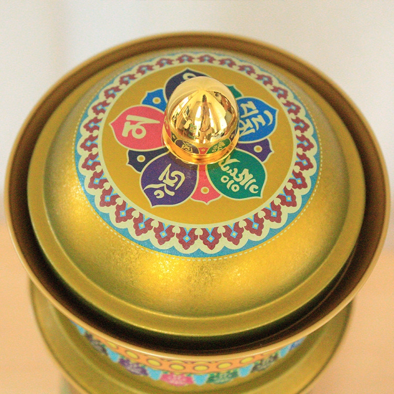 Tang Duo Kuo Luo Guan Zizai wish wheel golden Chinese desktop ornaments electric prayer wheel turning cylinder middle way angel