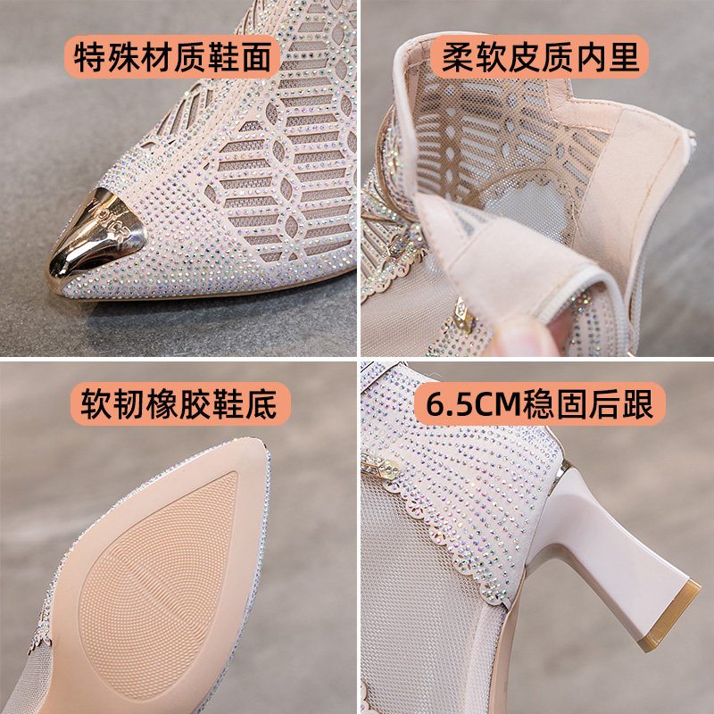 High Heels Children 2022 New Summer Spring Autumn Coarse Heel Wrap Shoes Martin Short Boots Hollowed-out Mesh Yarn Cool Boots