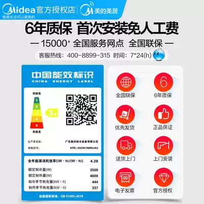 Midea air-conditioning, cooling and heating dual-use three-level new energy efficiency frequency conversion home appliances household wall-mounted large 1 5p horse wall-mounted air-conditioning smart arc