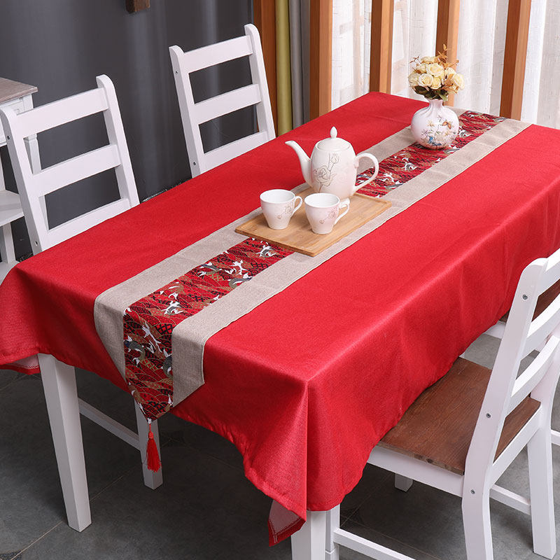 Solid color tablecloth fabric cotton and linen tablecloth Nordic minimalist coffee table festive red rectangular conference desk tablecloth