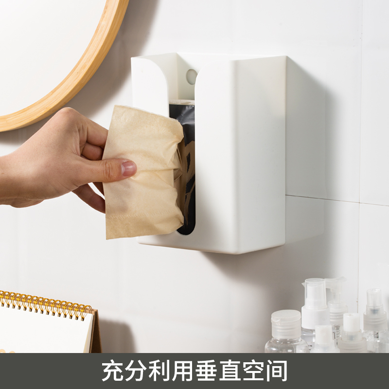 Wall-mounted Paper Towel Box Home Living Room Plastic Napkin Box Kitchen Creativity Free Punching Multifunction Removable Toilet Paper Containing Box