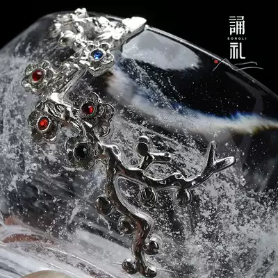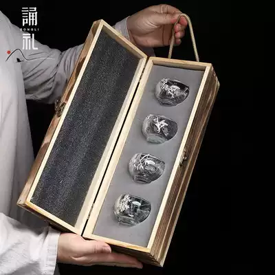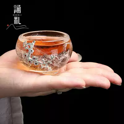 Chanting ceremony inlaid silver crystal tea cup kung fu tea set Cup home owner cup thickened single cup glass Ice Flower