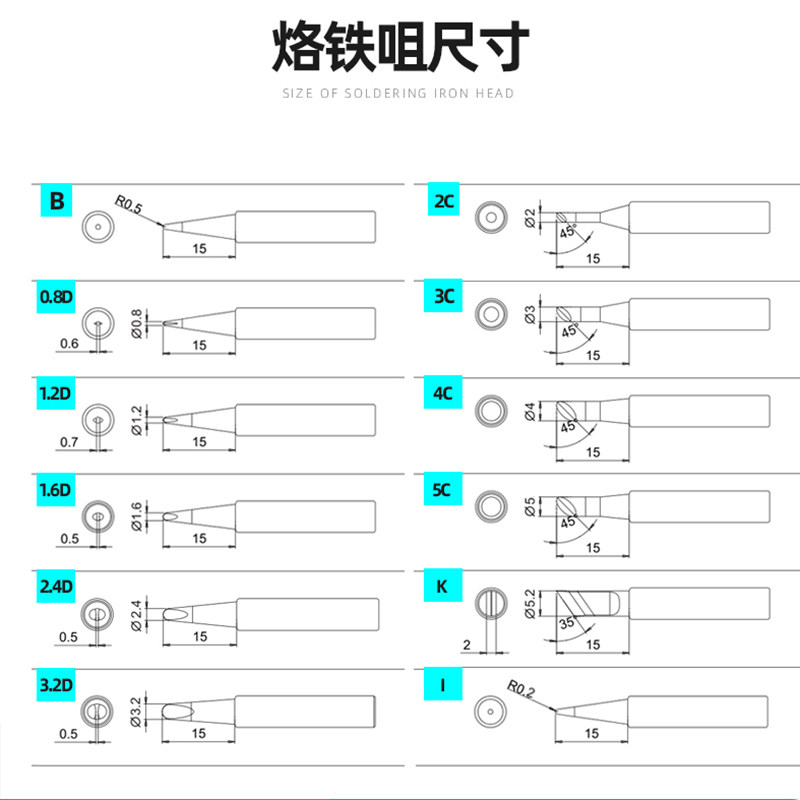 White light T600 soldering iron head BK6090 constant temperature welding table knife head tip Tsui round head horseshoe welding Tsui BK881 electric Luotie