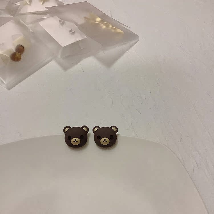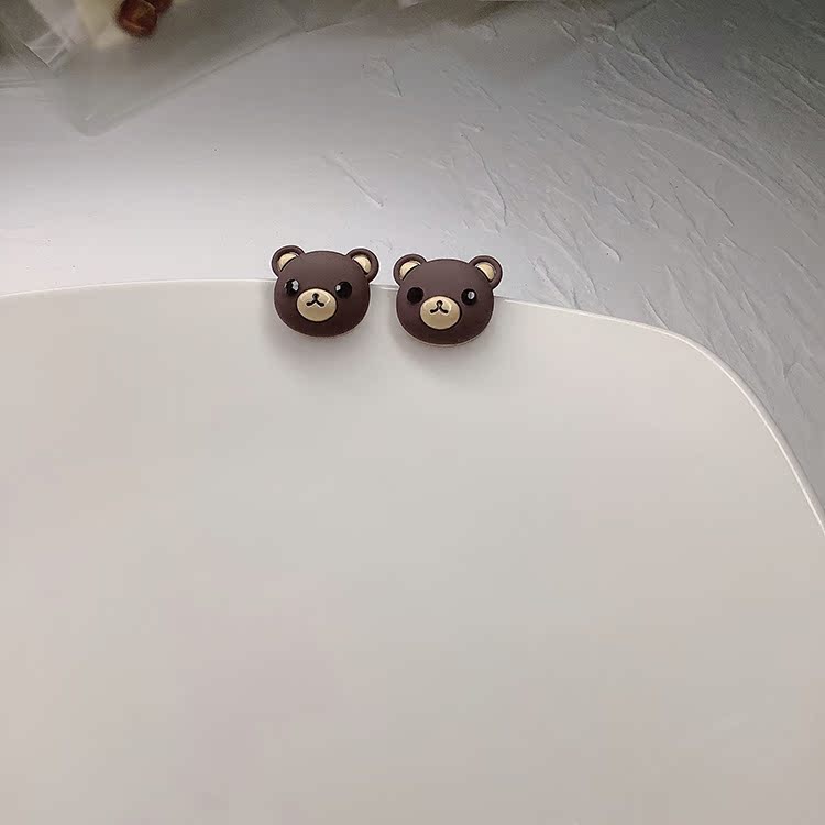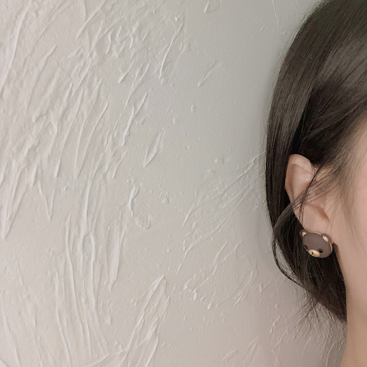 2022 new trendy jewelry coffee bear earrings temperament sweet and cute style face small silver needle earrings earrings female