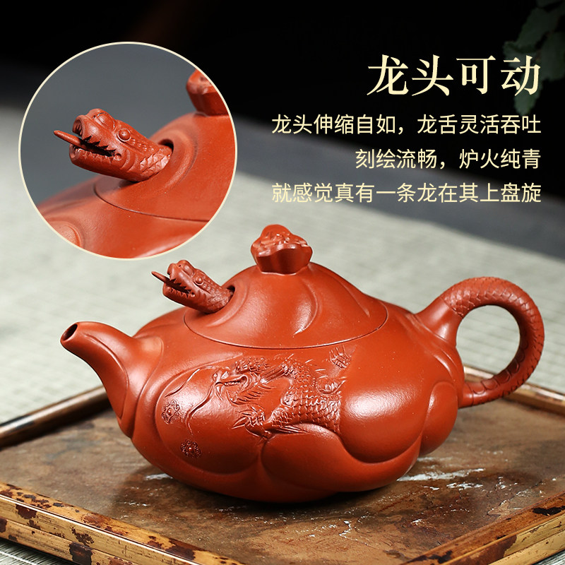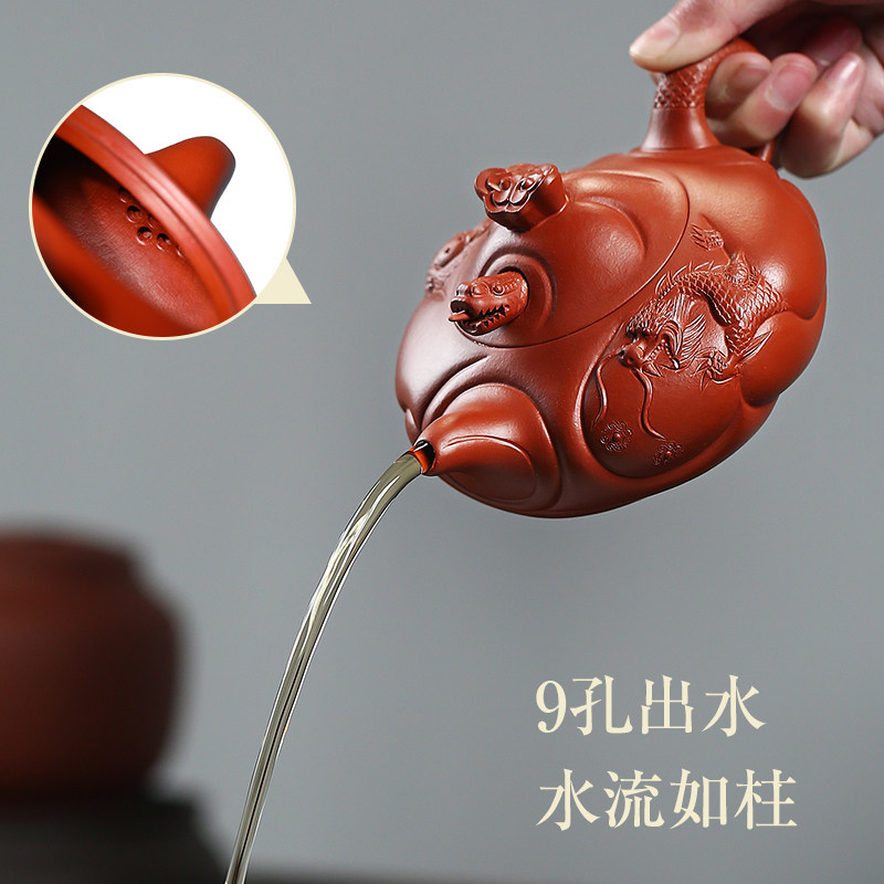 Positive square Yuan Yixing Purple Sand Pot Home Teapot Tea Tea Tea Tea tea Tea Tea Pure Total Handmade Fish Leap Longmenta Fish Culture Dragon Pot Big Pint Pot