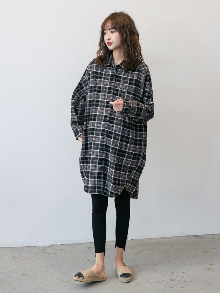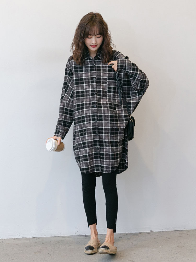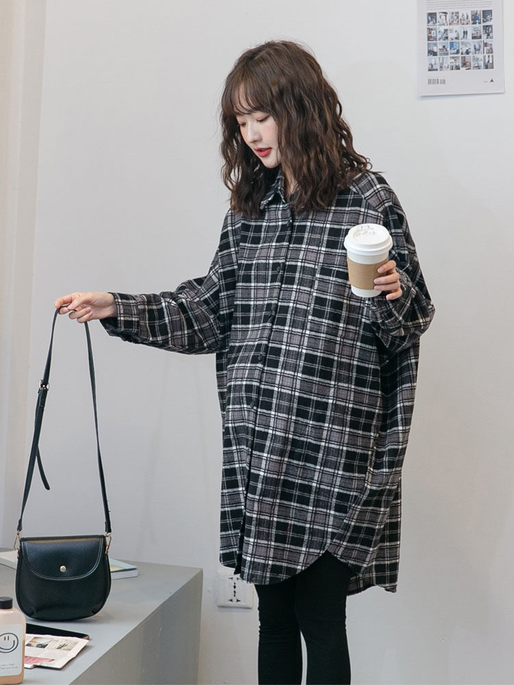 Fashionable plaid Hong Kong style ~ maternity wear spring and autumn casual lapels street wind in the long fashionable trend can be nursing shirt