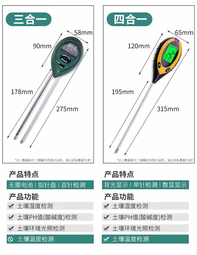Greenhouse agricultural soil moisture fertilizer detector flower and grass potted acid-base sensor PH value nutrient moisture
