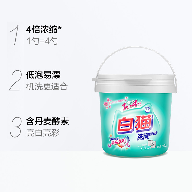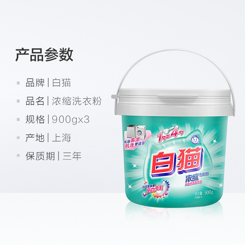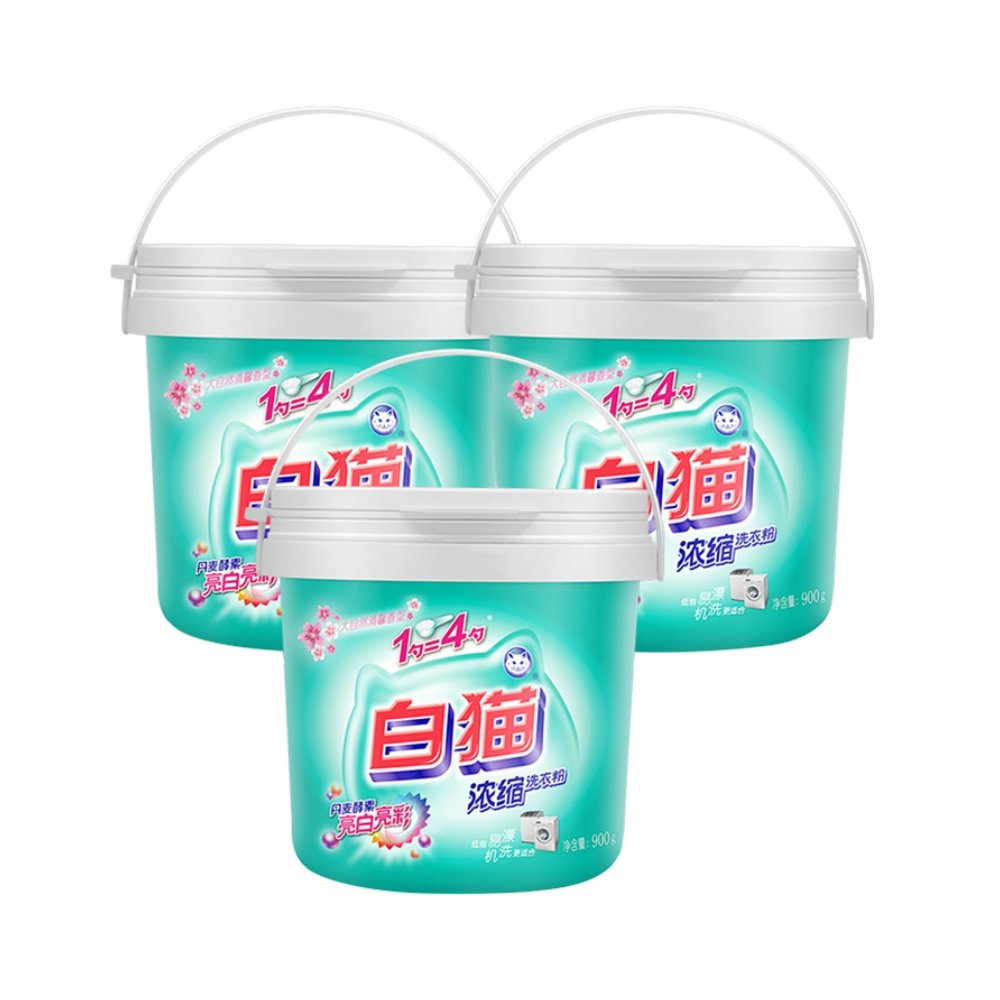 White cat concentrated washing powder cans 900g x 3 buckets to remove stains machine wash color washing powder household