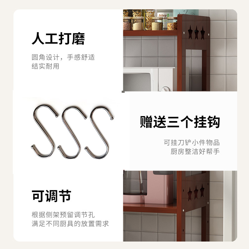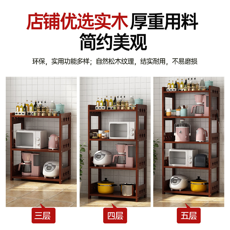 Kitchen shelf floor-to-ceiling solid wood Chinese-style layered microwave oven oven storage shelf home multi-functional sideboard cabinet