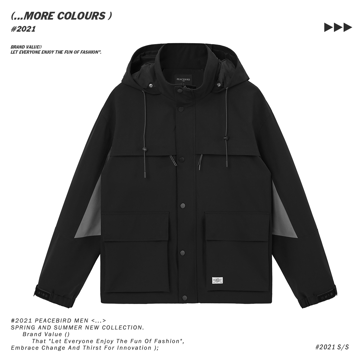 Taiping Bird men's new multi-pocket tooling wind jacket hooded color trend cool jacket fashion stormtrooper