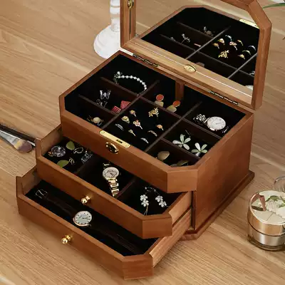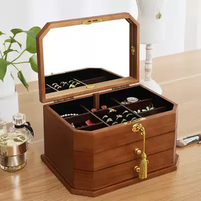 Solid wood jewelry box storage box European-style high-end luxury ancient style Chinese style small exquisite household earrings jewelry ring
