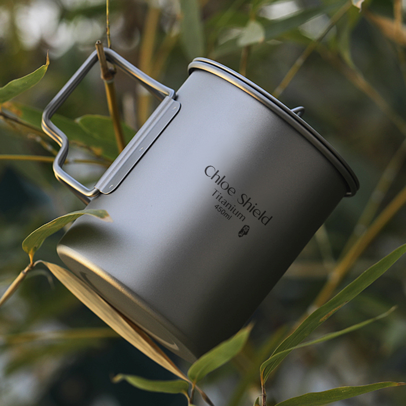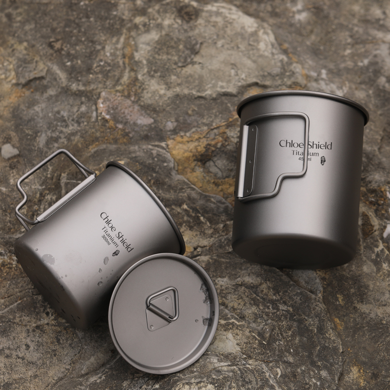 Koushield Outdoor Titanium Water Furniture Pure Titanium Water Cup Teacup Coffee Cup Folding Handle Portable Home Casual Cup Combo-Taobao