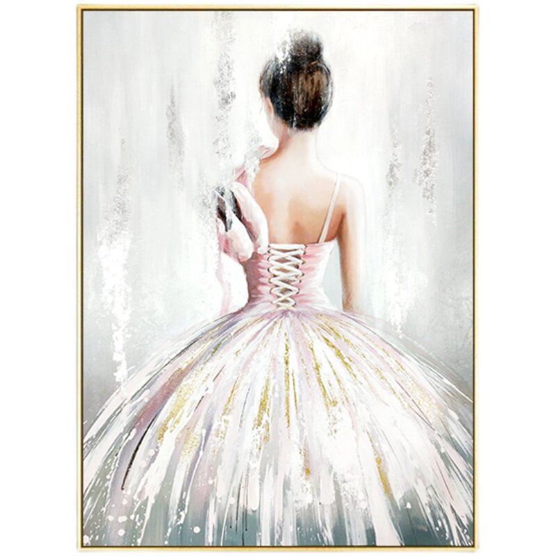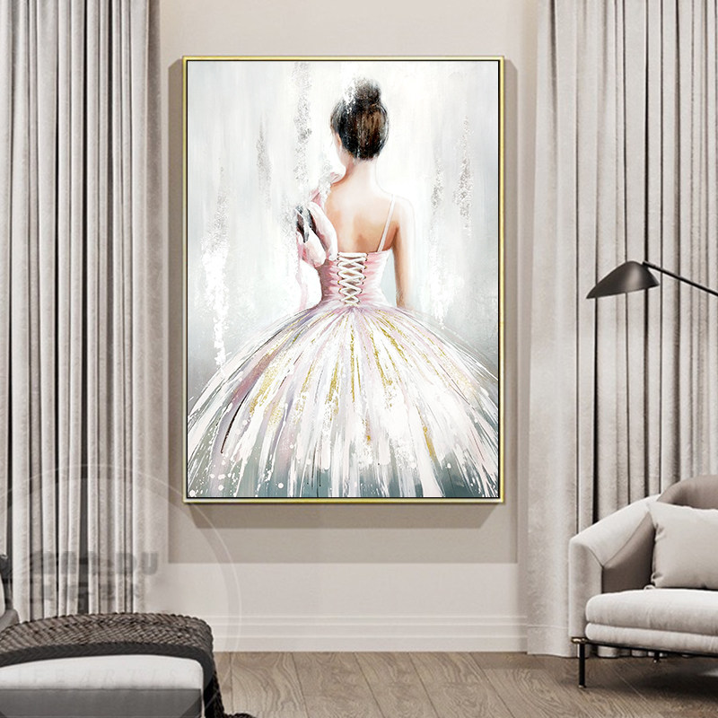 Modern simple girl back hand painted oil painting Living room entrance decorative painting Character Ballet beauty Bedroom hanging painting