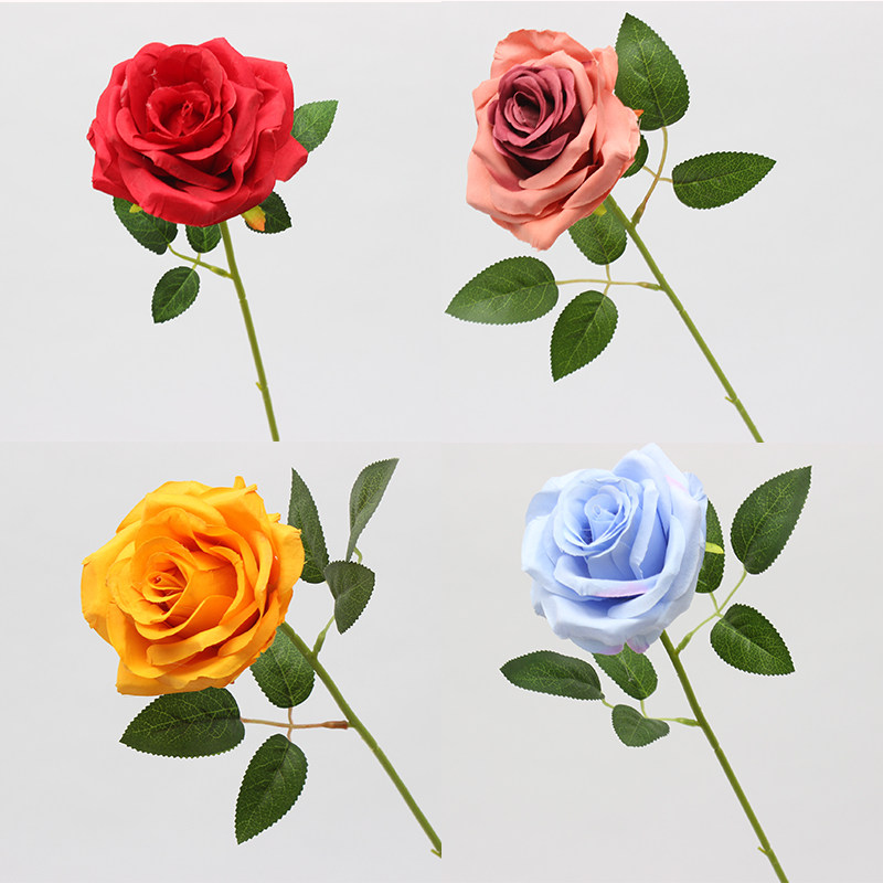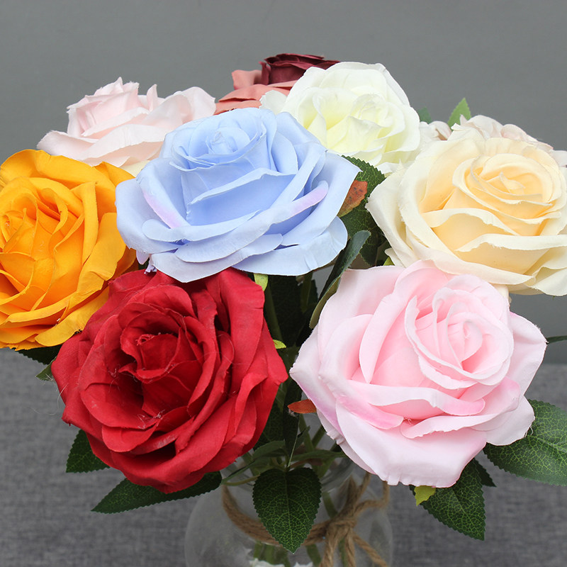 Simulation flower single branch Alice rose red champagne small fresh bouquet silk flower wedding hall soft decoration rose