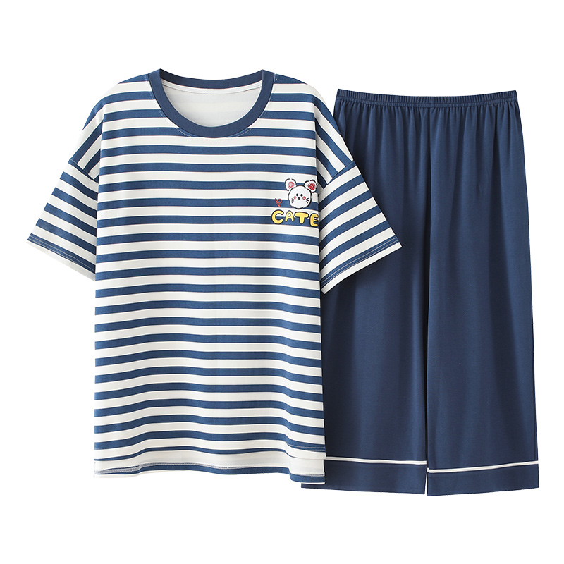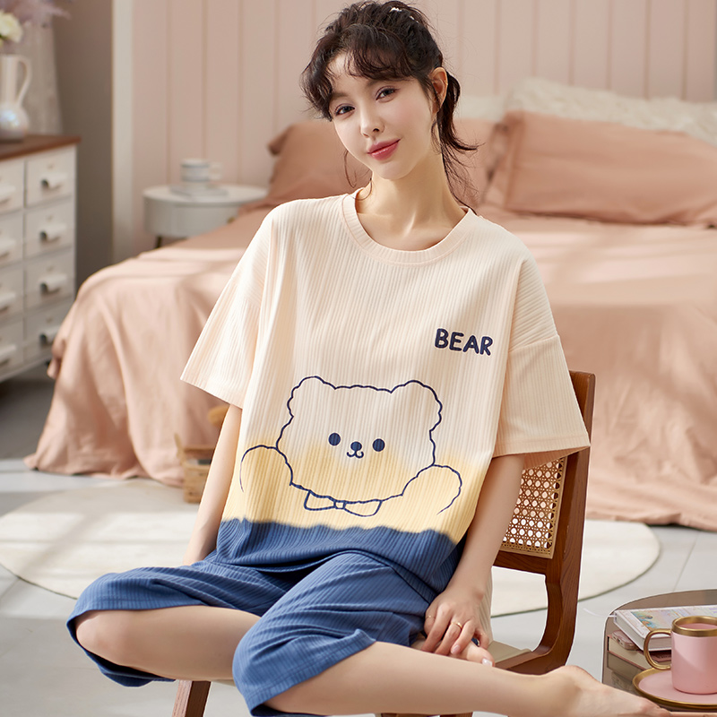 Pajamas woman summer pure cotton massive weight mm 200 short sleeve seven - point trousers in 2023 new fat girl summer