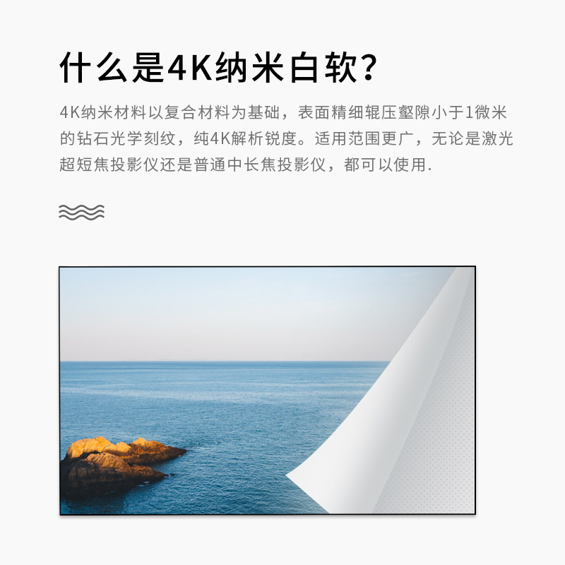 Picture frame curtain projector home 4K HD wall hanging white nano soft curtain 100 inch 120 inch narrow side curtain