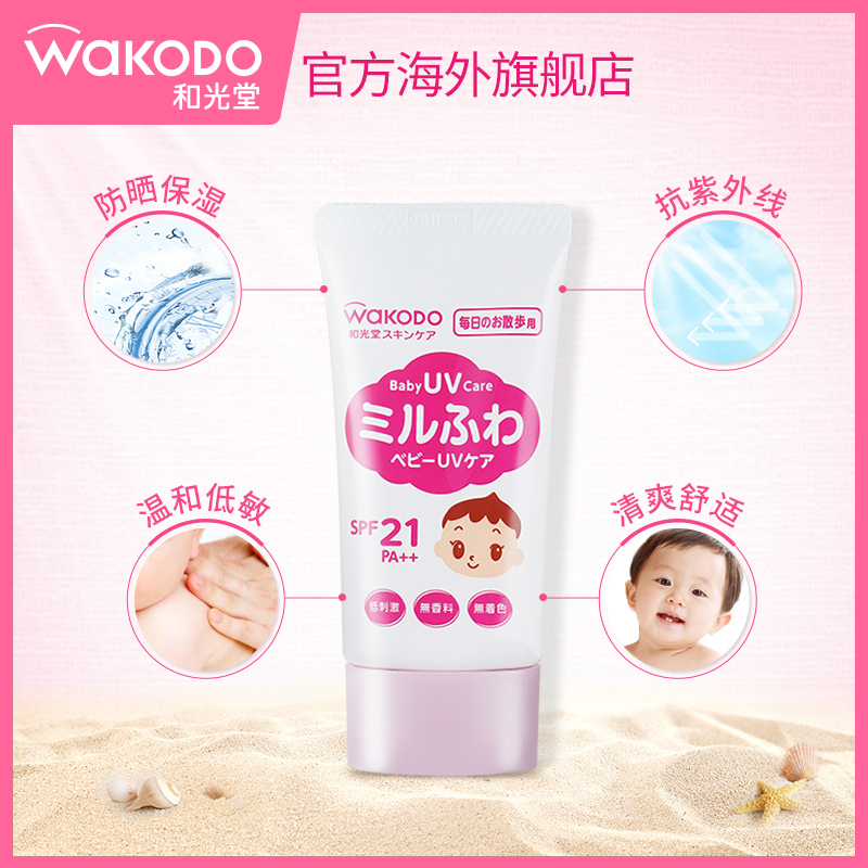 WAKODO WAKODO Baby Moisturizing Sunscreen 30g Hypoallergenic Sunscreen SPF21 PA 2 pcs