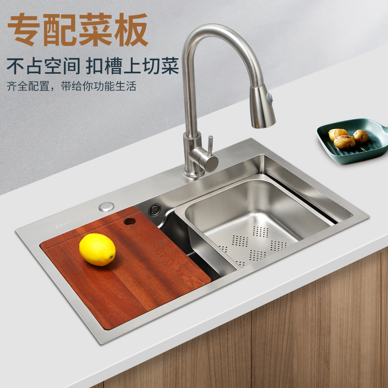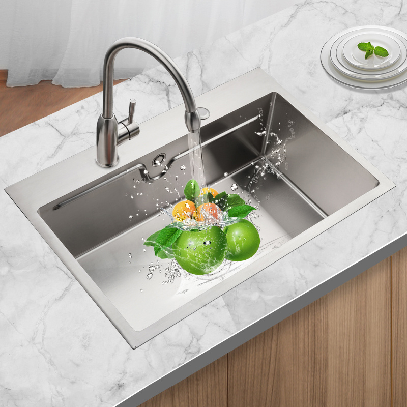 Household manual sink 304 stainless steel thickened sink kitchen sink single-slot basin medium basin under-counter basin large
