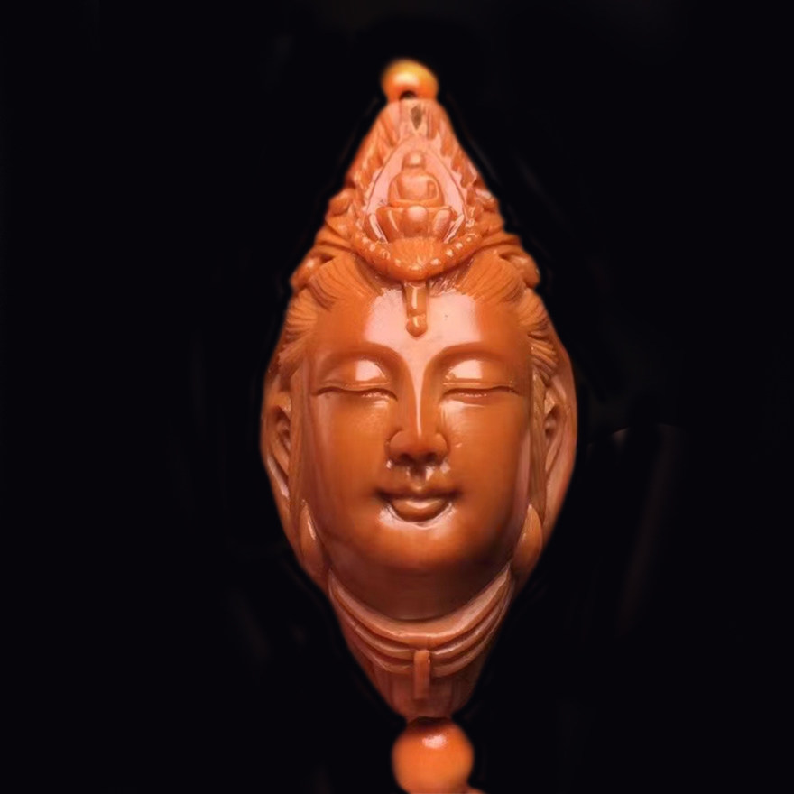 1 95 * 3 7cm "The great Citatsu Guanyin" master works classic Tibetan olive nuclear sculptor string