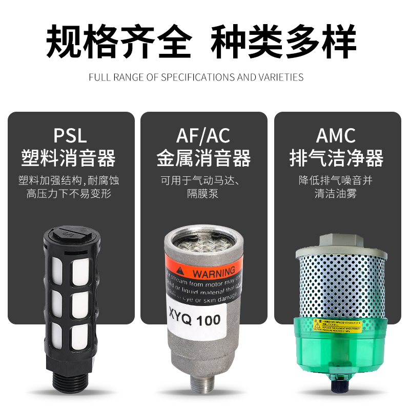 Plastic silencer PSL-01 1 8 inch plastic silencer PSL-02 1 4 inch plastic silencer PSL-03 3 8 inch plastic silencer PSL-