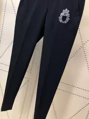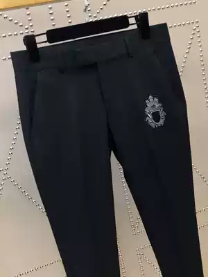 European fashion new crown badge embroidery gentleman business slim Joker men casual nine small foot trousers