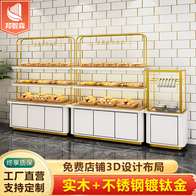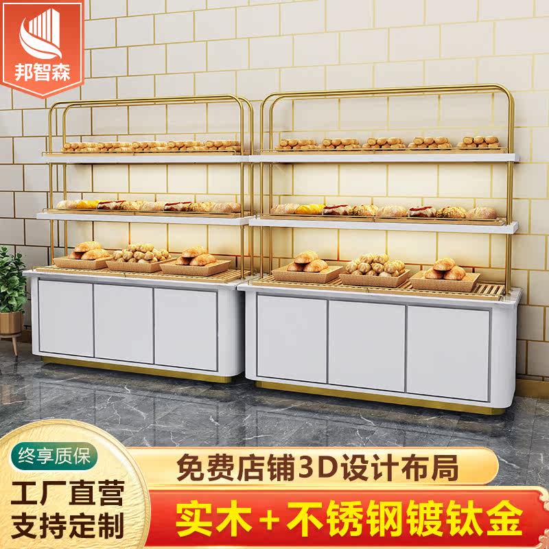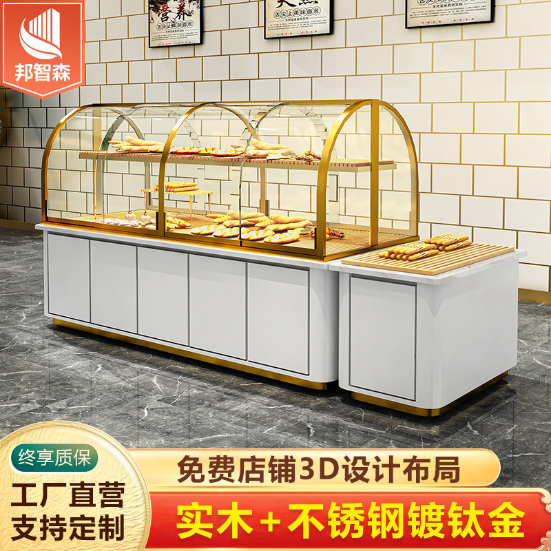 Bread display cabinet Island side cabinet Cake shop model cabinet Curved glass stainless steel titanium plated pastry display counter