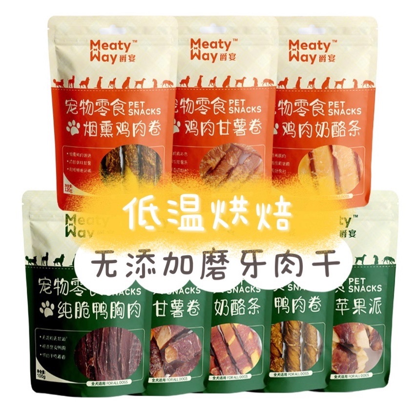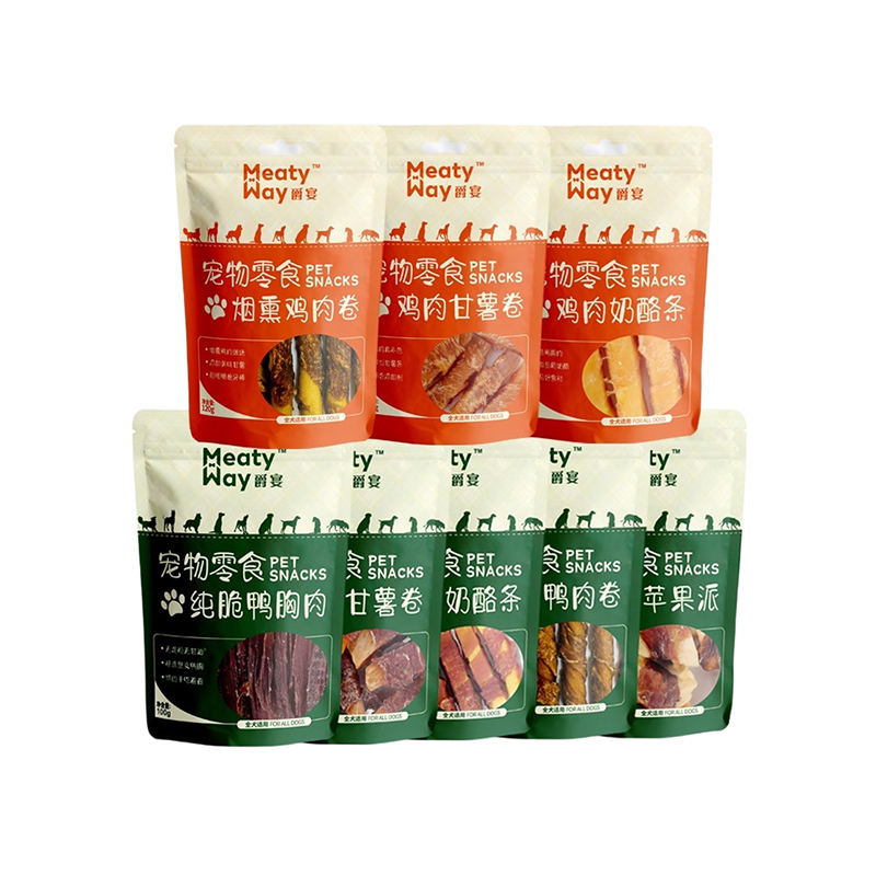 Chicken Sweet Potato Roll 100g Duck Apple Pie 100g Duck Sweet Potato Roll 100g Smoked Duck Roll 120g Smoked Chicken Roll 120g Pure Crispy Duck Breast 100g Duck Cheese Roll 1