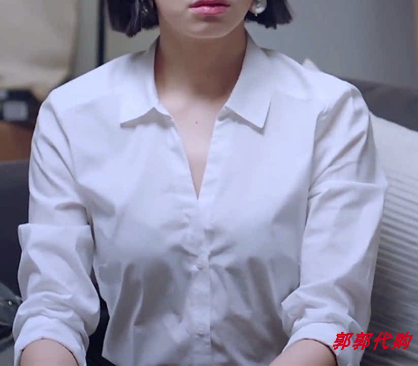22 Spring new stars Song Qian the same section Long sleeves Fashion 100 lap top design feeling small crowd V collar professional white shirt woman