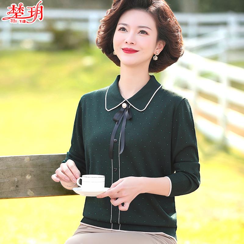 Middle Aged Mother Spring Dress Foreign Pie Knitwear Knitwear Long Sleeve T-shirt Mid-Aged Lady Spring Fall on the undershirt