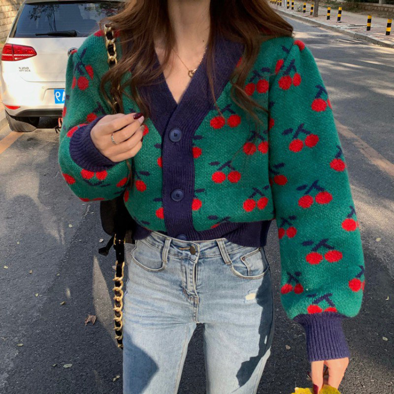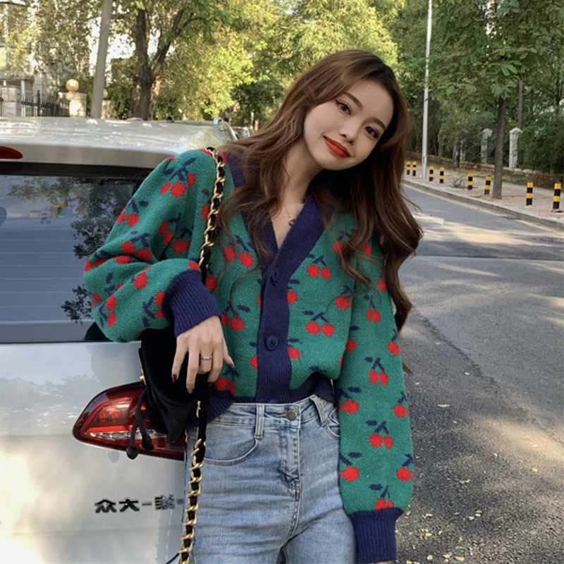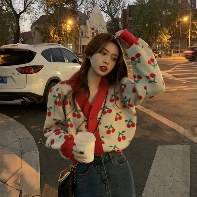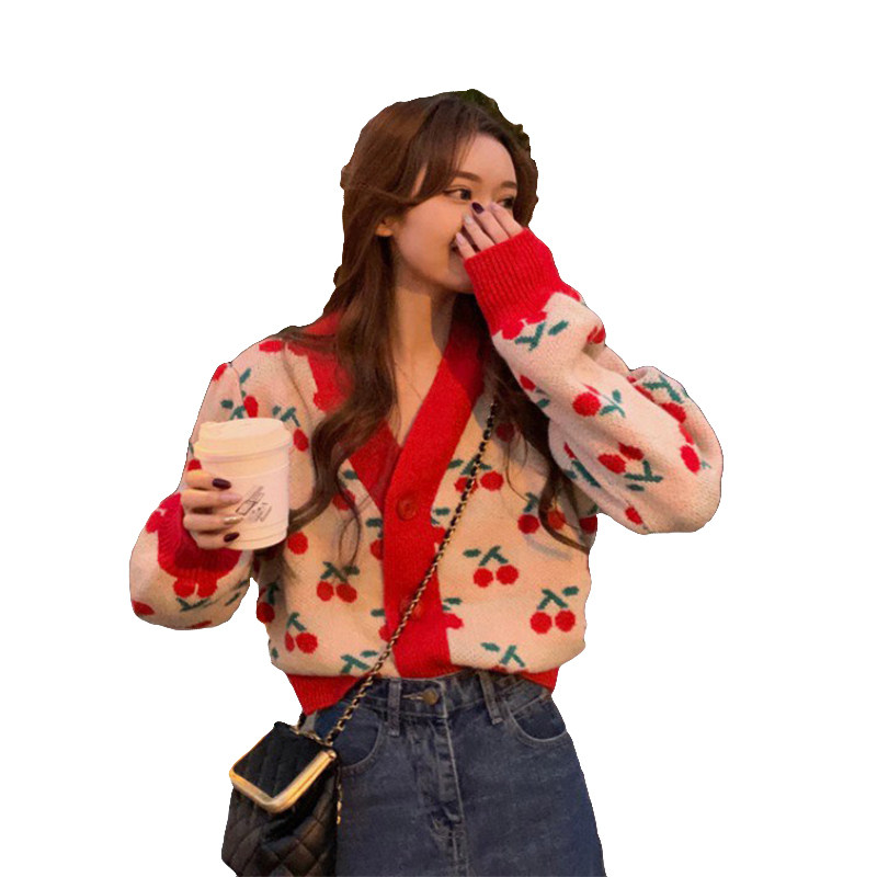 European Standing Autumn Winter New High-end Small Scent Wind Christmas Red Sweater Loose Knit Cardiovert Coat Woman Gentle Wind