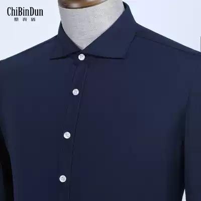 Chi Bin Shield men's shirt long sleeve elastic non-ironing Windsor collar solid color navy blue business professional slim shirt