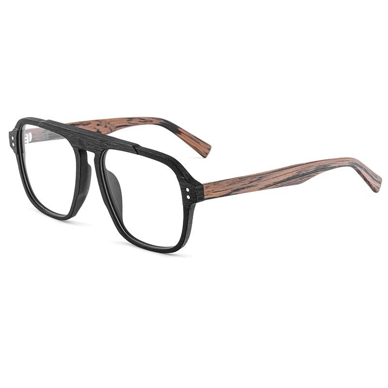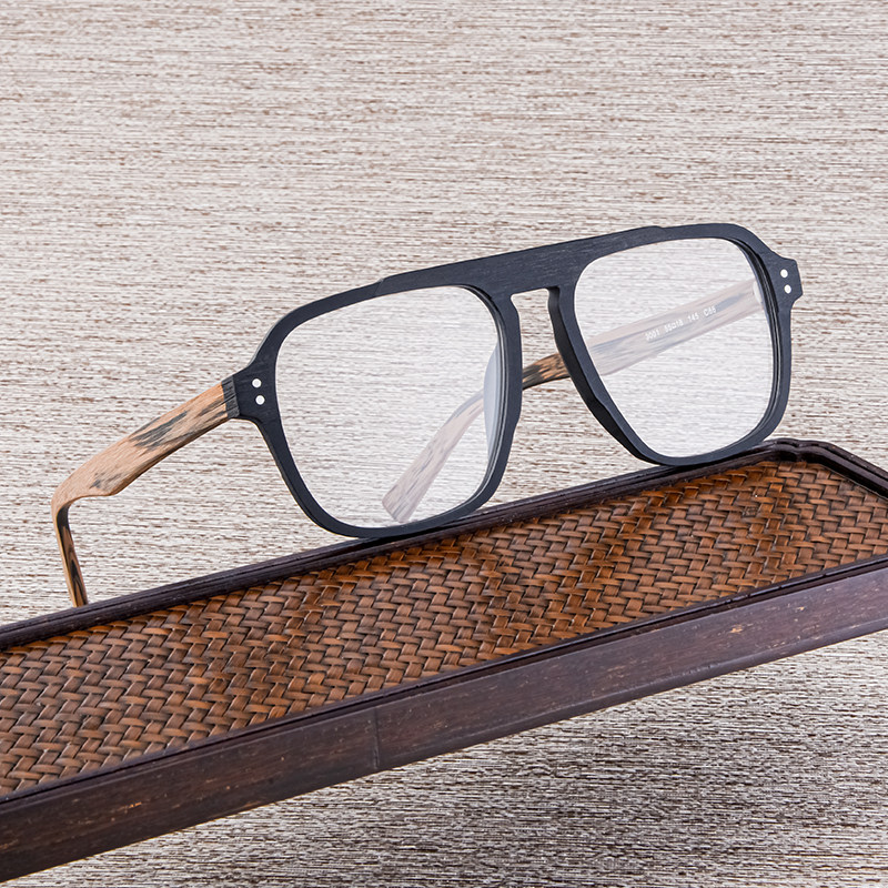 Woody retro big frame Double-beam glasses frame plate wood grain myopia large face eye frame male and female tide