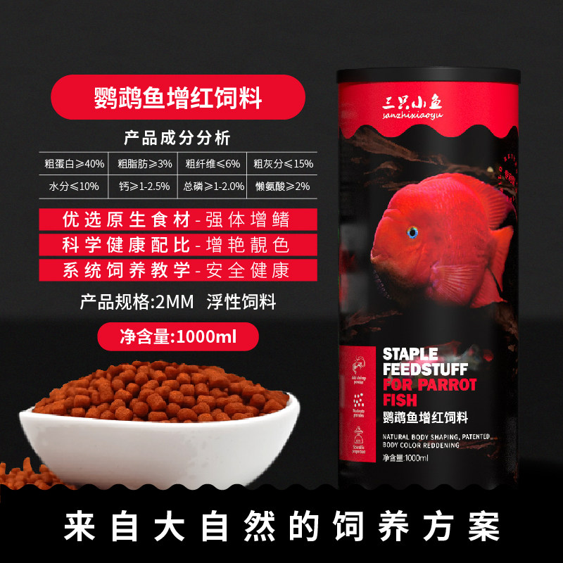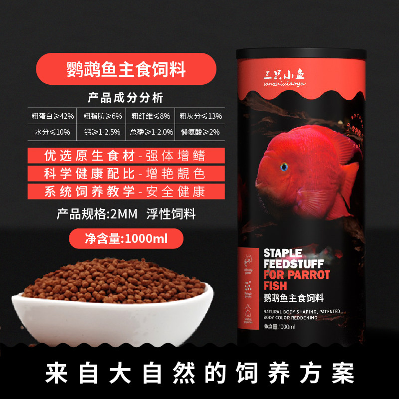 Three small fish parrot fish feed blood parrot silver dragon fish Rohan fish ornamental fish patent increased color and red fish food