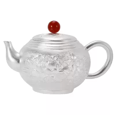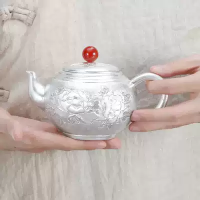 Taian silver sterling silver 999 foot silver handmade hammer pattern Lotus tea pot office set Silver pot Kung Fu tea