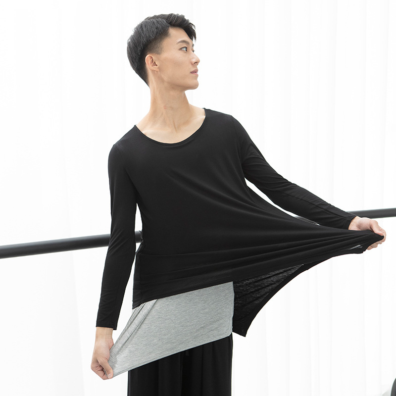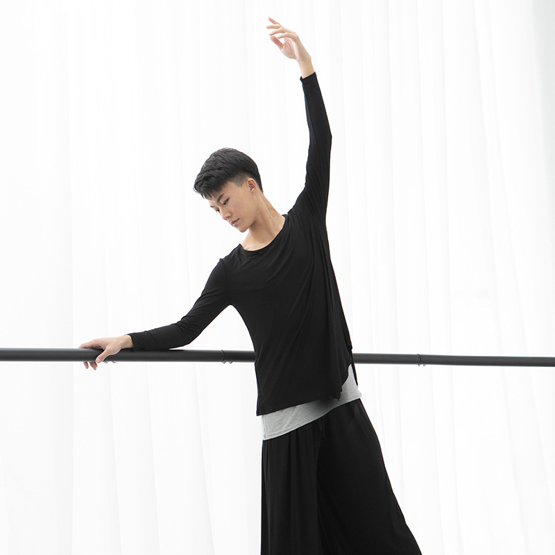 Dance art test body suit men's black long-sleeved loose modern dance yoga Latin dance ballet exercise suit jacket