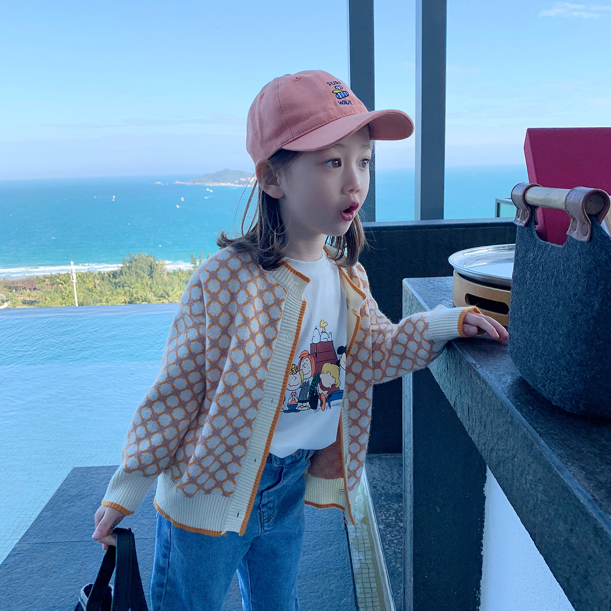 Girls cardigan 2021 children's spring wear new style foreign air knit long sleeves baby casual small coat thin top tide