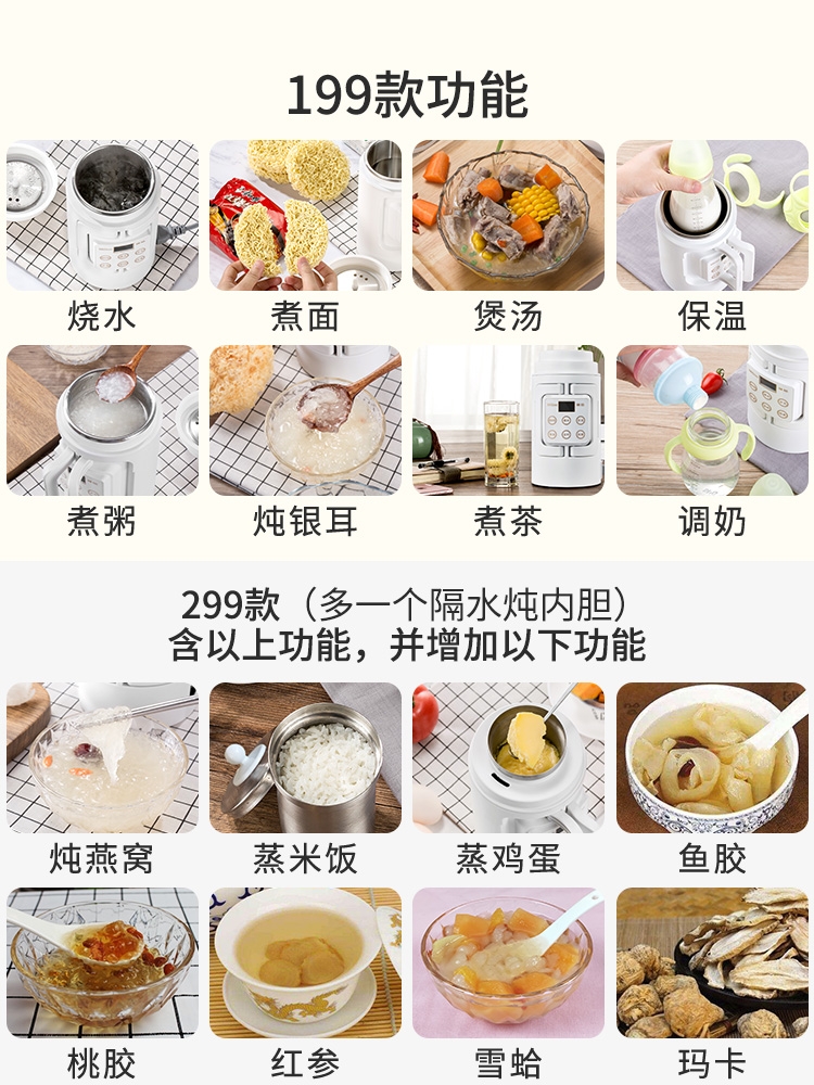 White (for domestic use) 220V white with water-proof stew pot (for domestic use) 220V white (for foreign use) 110V white with water-proof stew pot (for foreign use) 110V