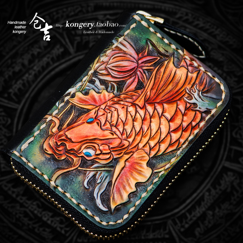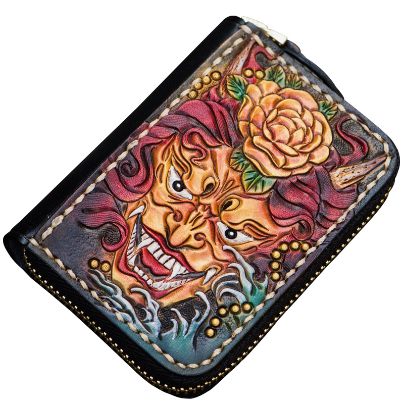 Bin Kit Handmade Card Bag for men and women Short-sum zero-wallet Laced Leather Organ card Baotou Layer Cow Leather Leather Wallet