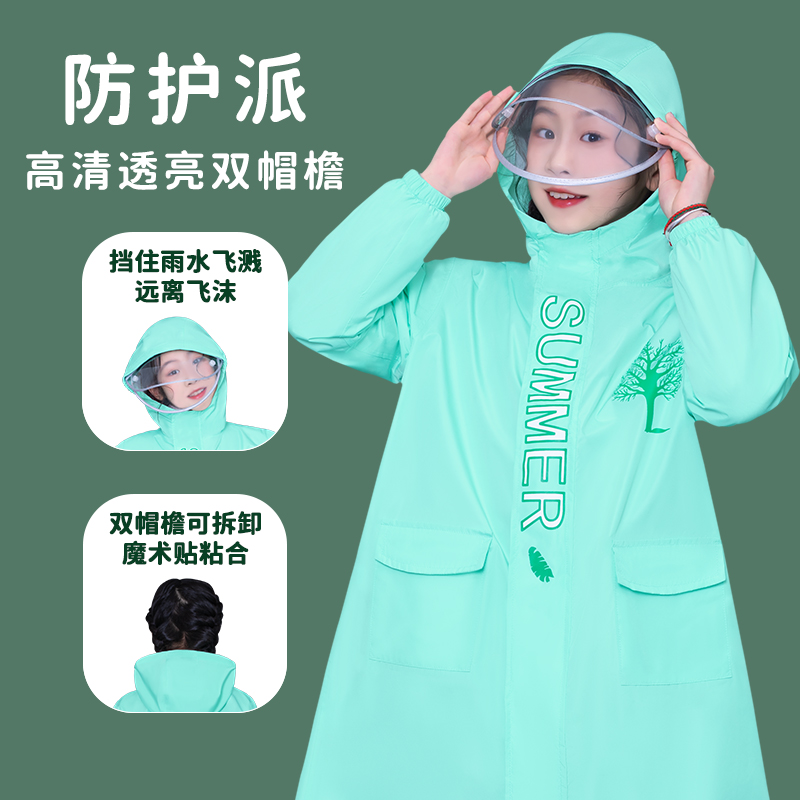 Children and girls attending school with school bags and young children in childhood waterproof and thick raincloth