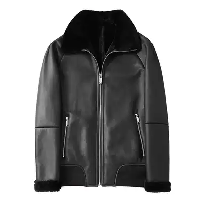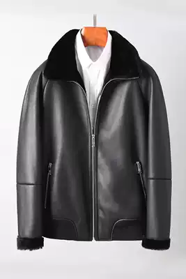 Real leather hair one men's leather coat winter fur jacket short 5534579368