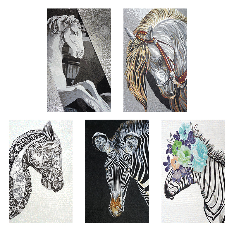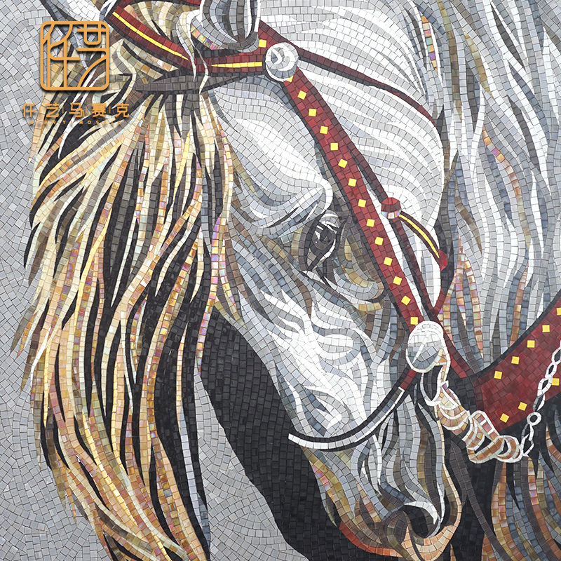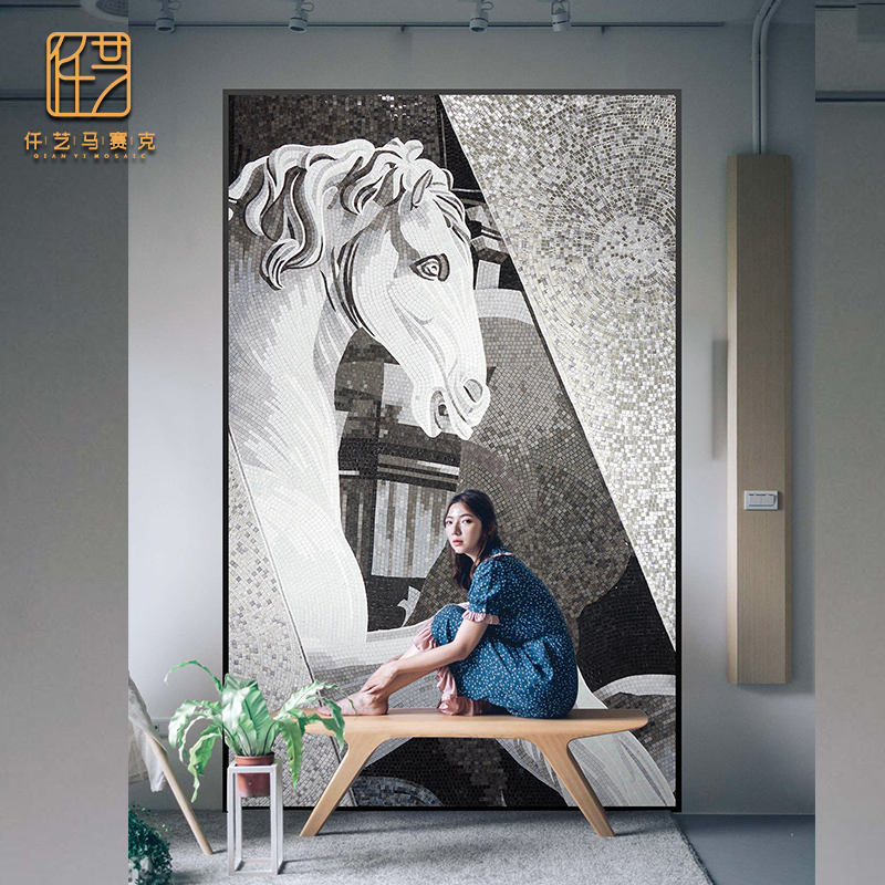 Mosaic background wall art mural clip art decorative painting living room powder room corridor porch handmade custom horse figure