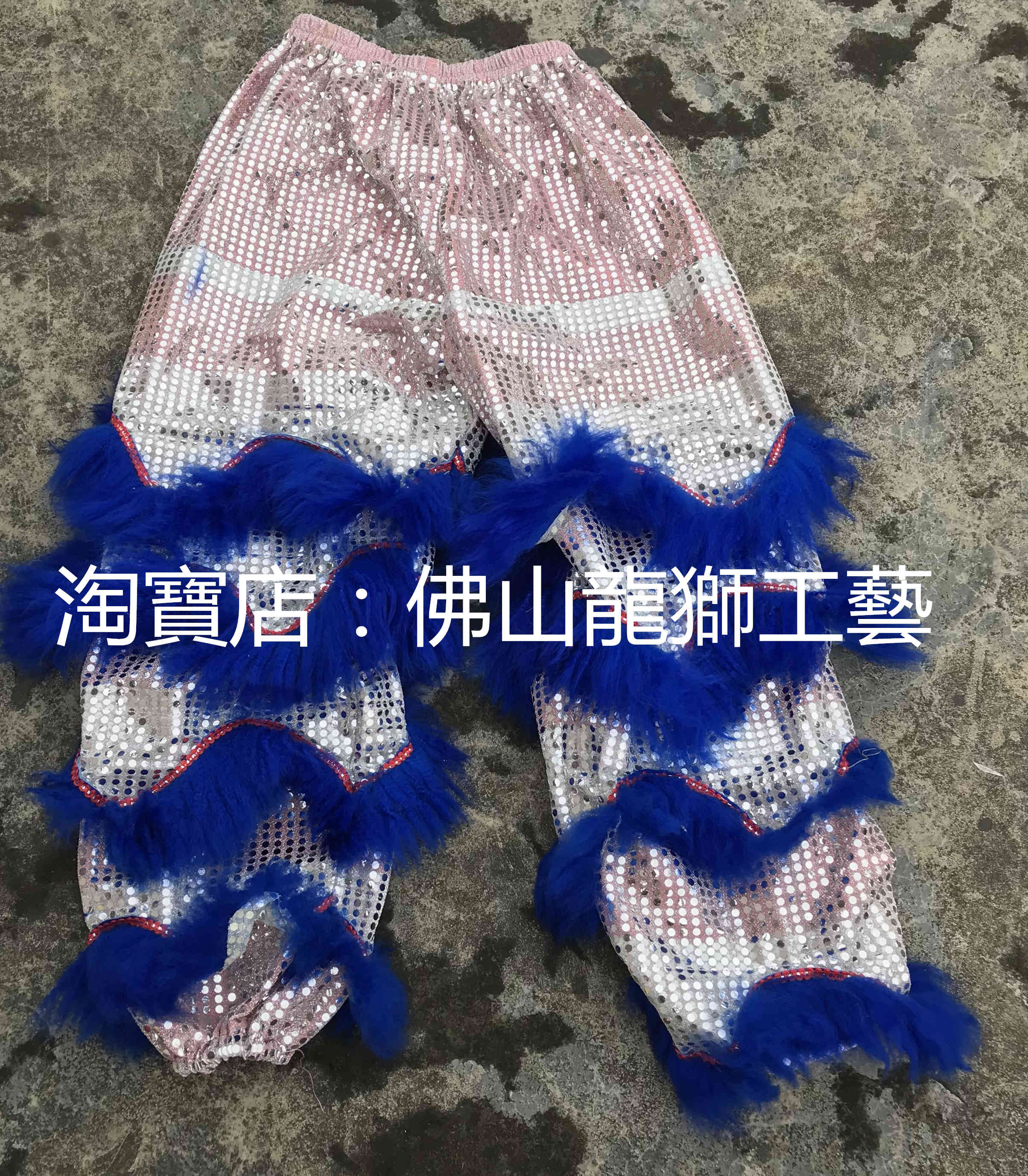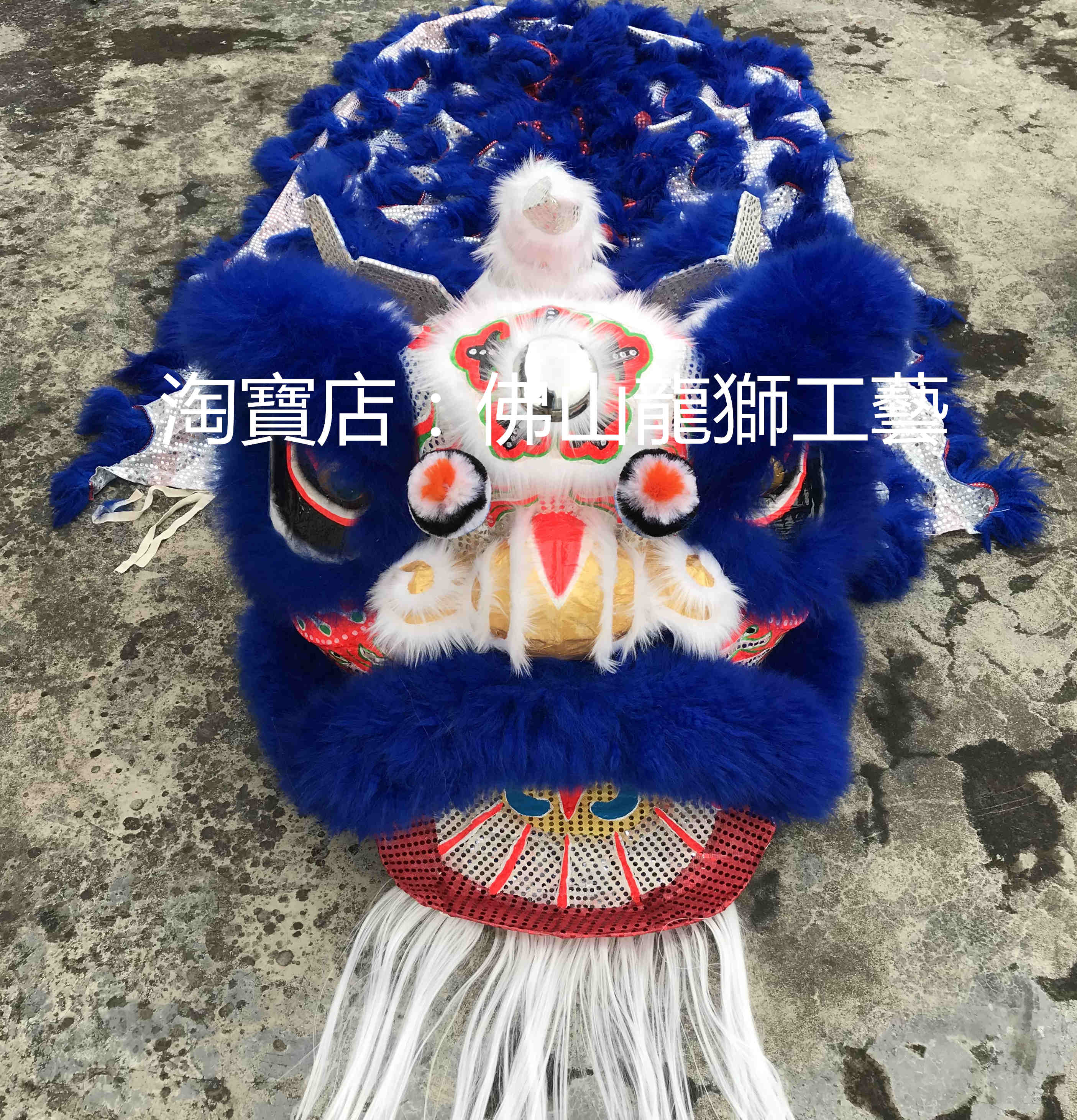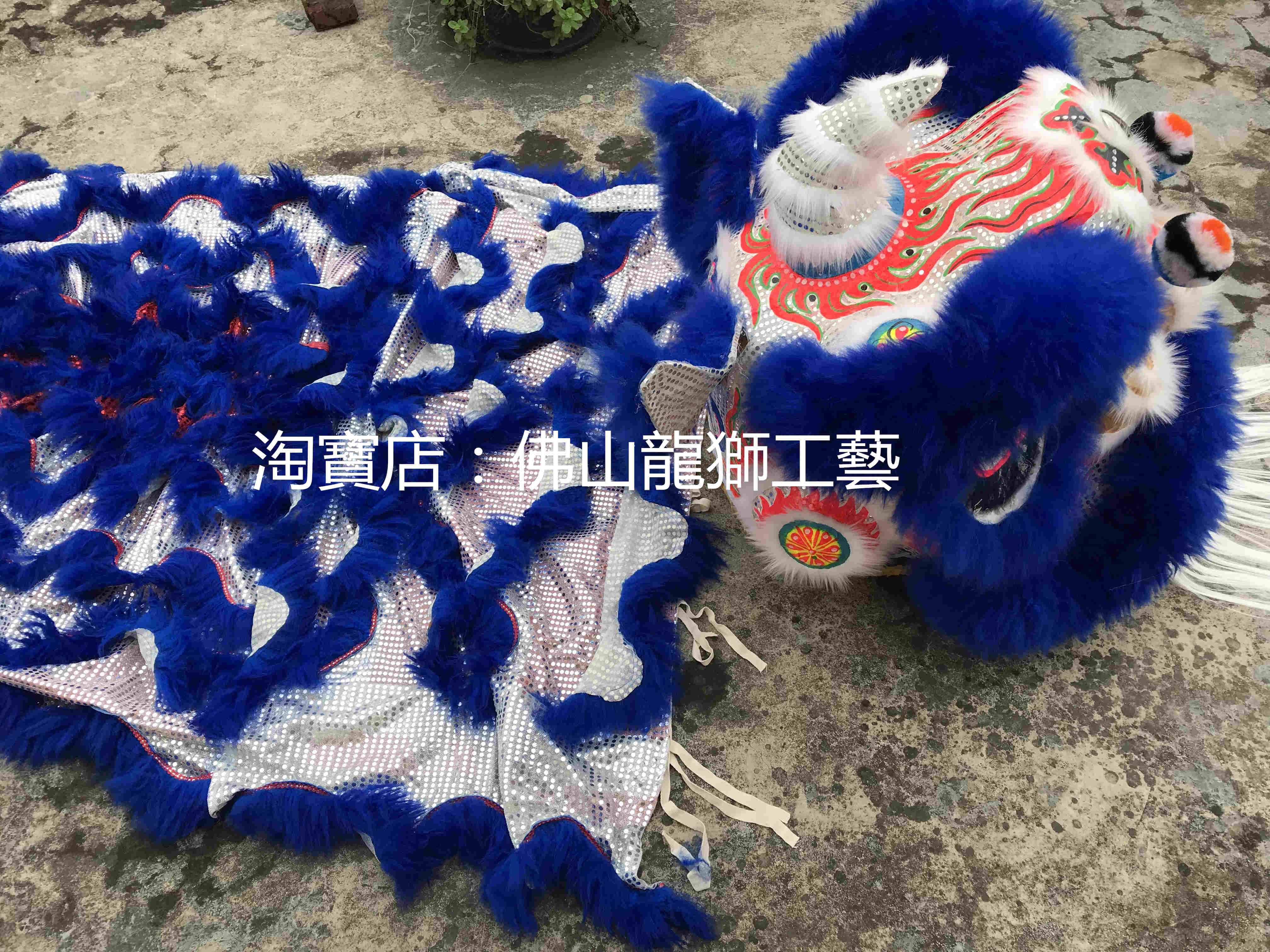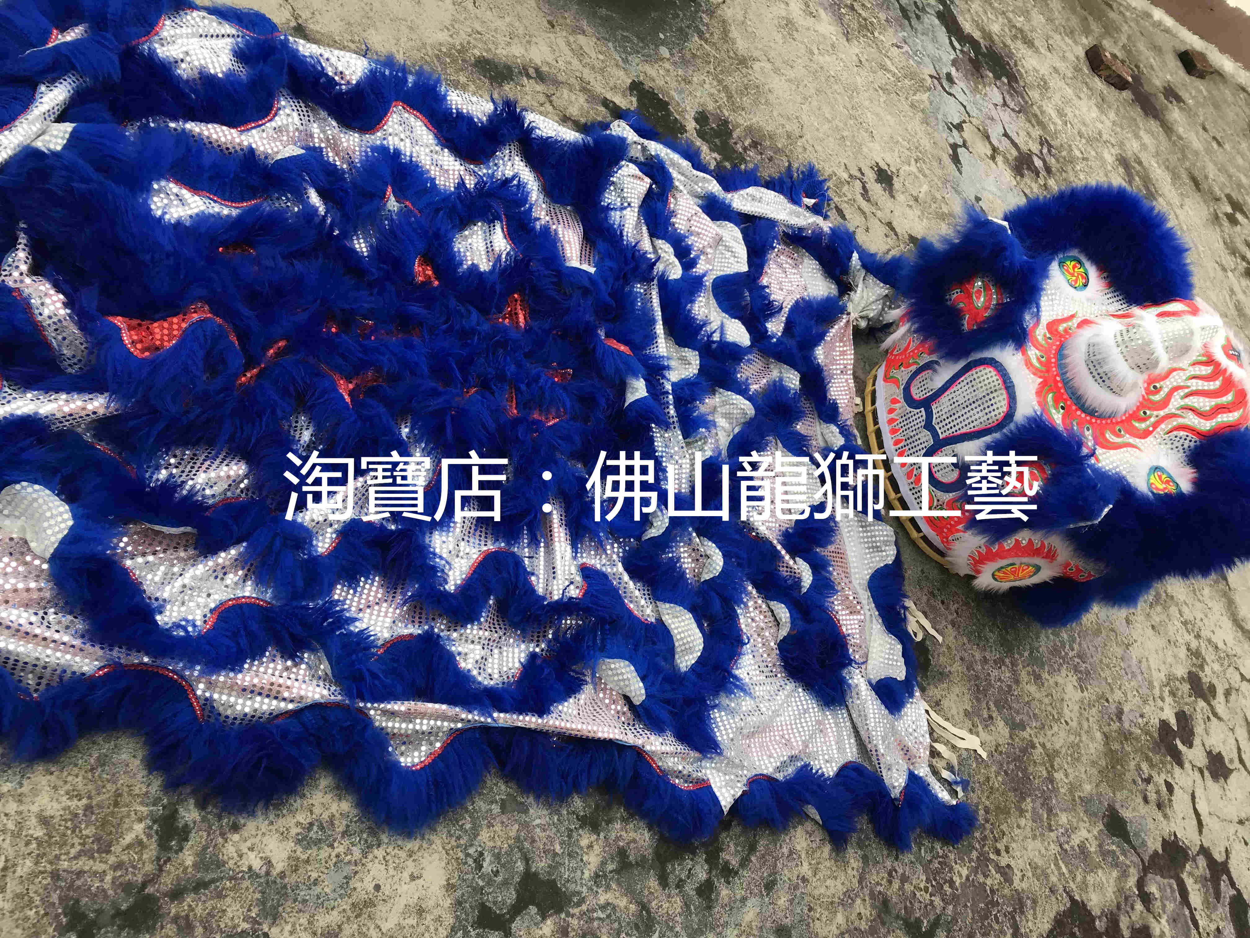 Authentic Foshan traditional Buddha costume, round cheeks, silver sequins, blue wool lion head set) sequin cloth) Nanxing lion) set