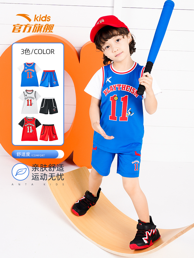 Ann Stepping Children's Basketball Suit Boy Summer Dress 2022 New Kid Baby Sports Suit Breathable T-Shirt Pants