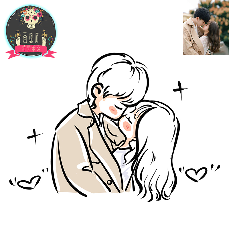 Q version of the hand-drawn avatar custom small white head comic character image design real photo transfer hand-drawn couple portrait