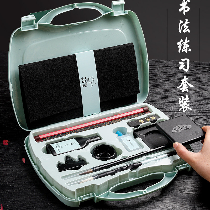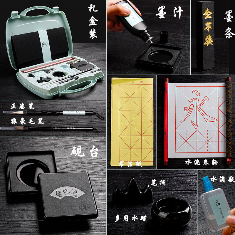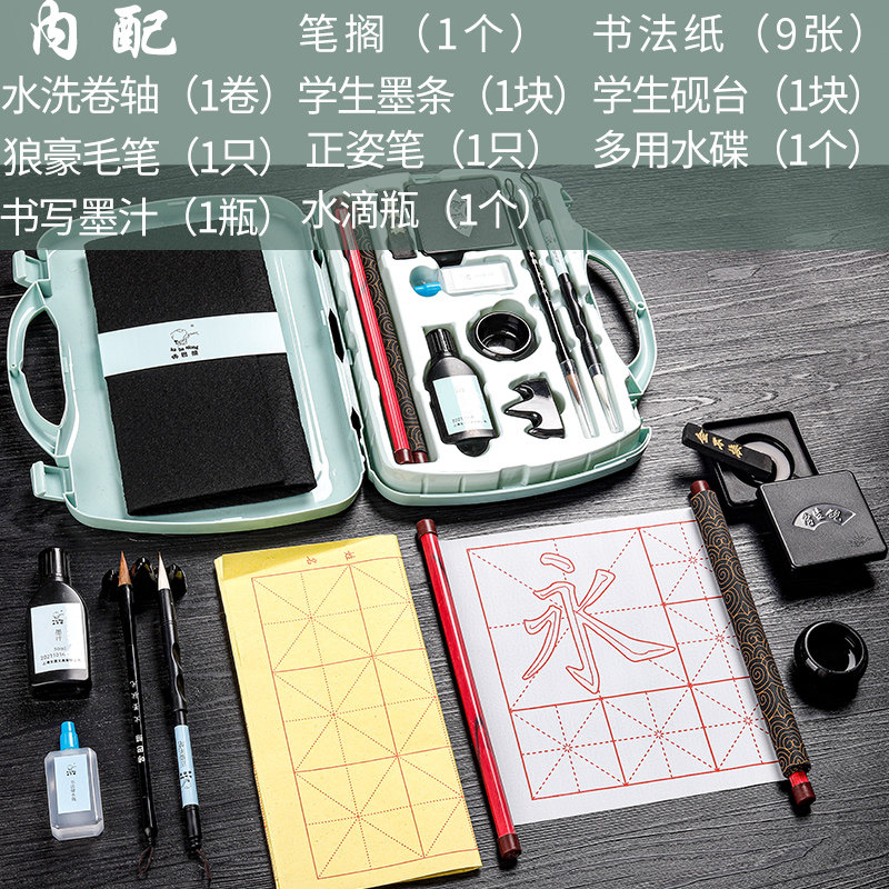 Brush set for beginners Elementary school students practice calligraphy water writing cloth A full set of brush copybook Children practice calligraphy brush water writing cloth Pen ink paper ink ink inkstone Four treasures of Wen Fang gift box Small regular script tool