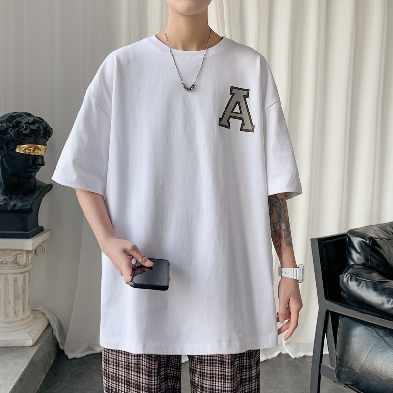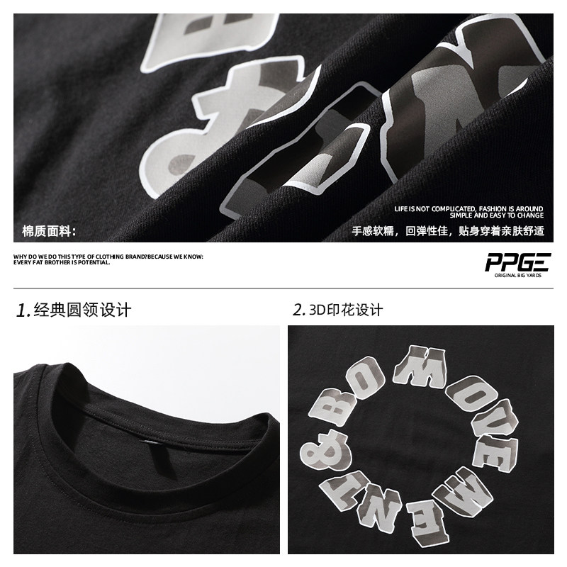 Short sleeve T-shirt male large size half sleeve summer tide card 100 lap port wind 2021 thin section trendsetto fatter men's clothing