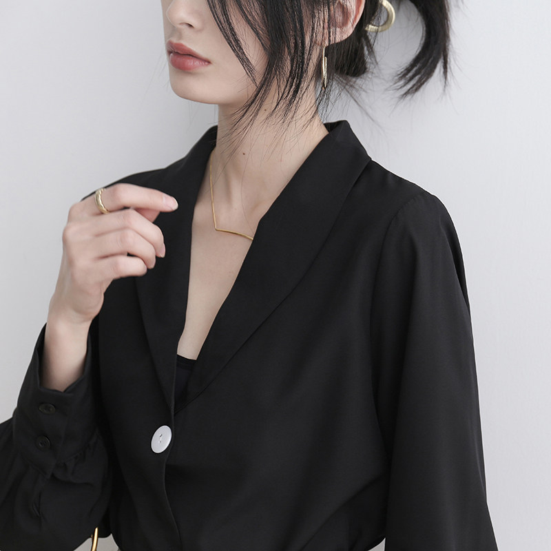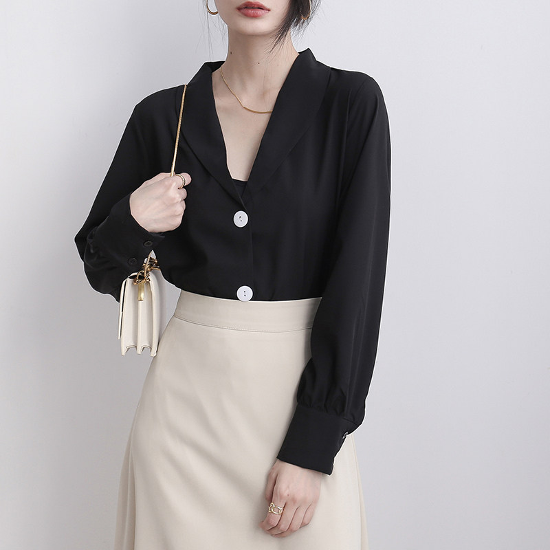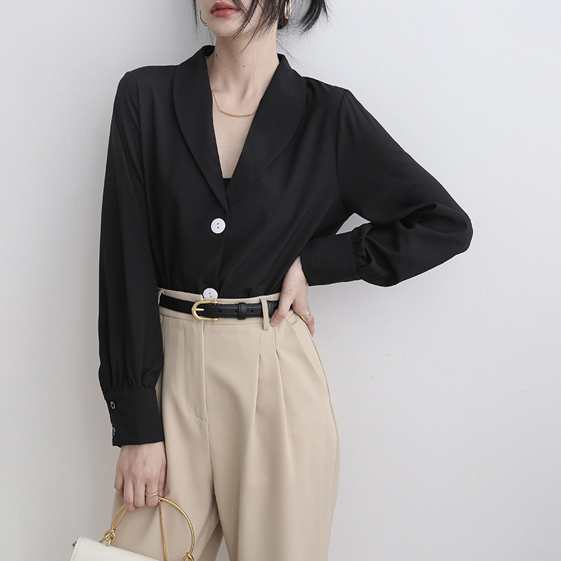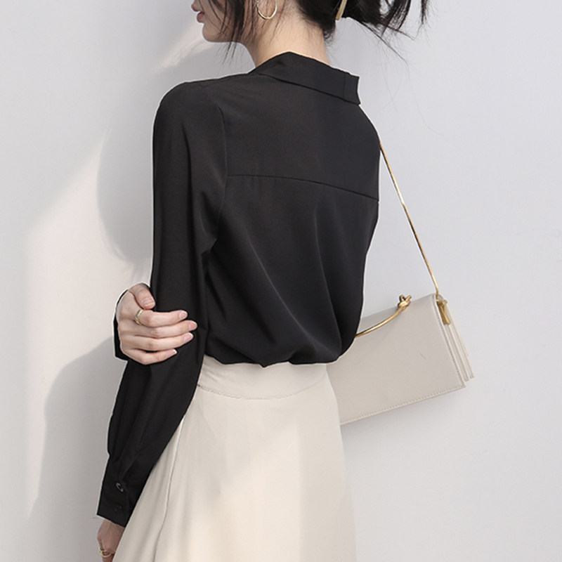 Black chiffon shirt women's summer 2022 new temperament solid color chic long-sleeved top design sense niche shirt