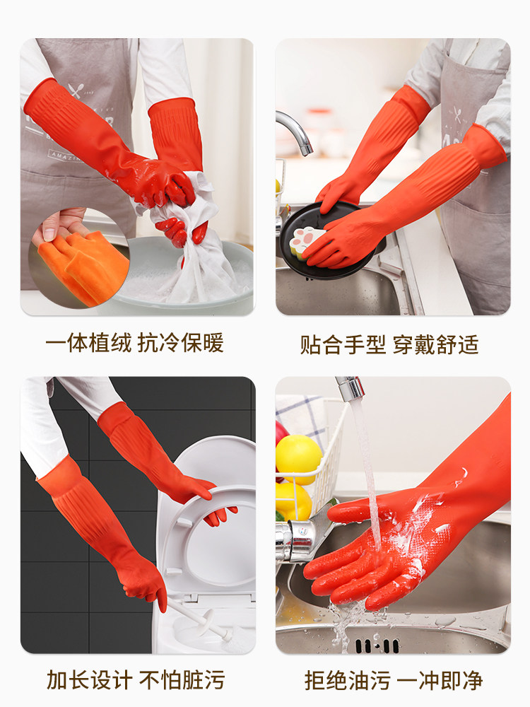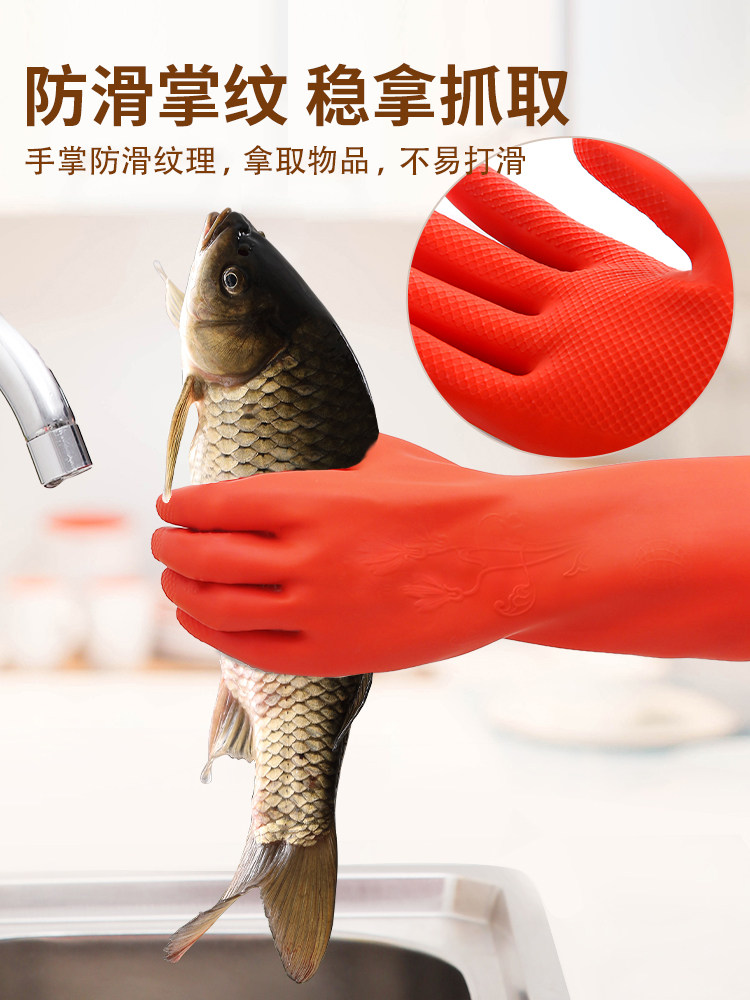 Dishwashing rubber gloves for women waterproof wear-resistant durable kitchen chores plus velvet thickened warm laundry cleaning special