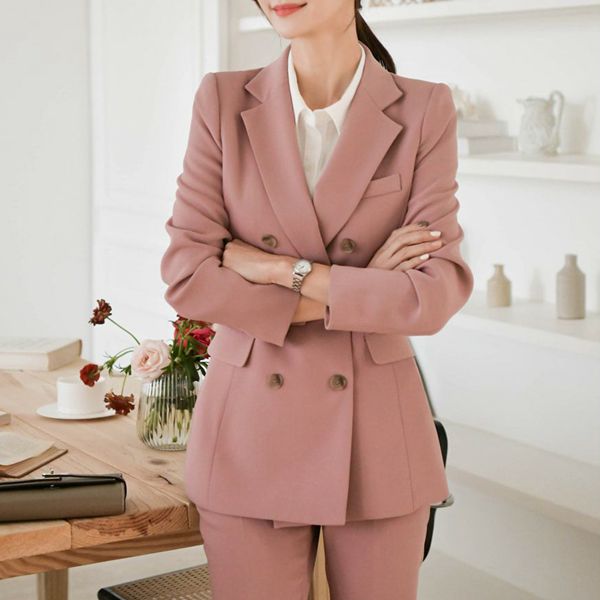 Large Tip Collar Double Row Buckle Girdle Suit Jacket Microlasie Pants Long Pants Two-piece Suit South Korea Fall New