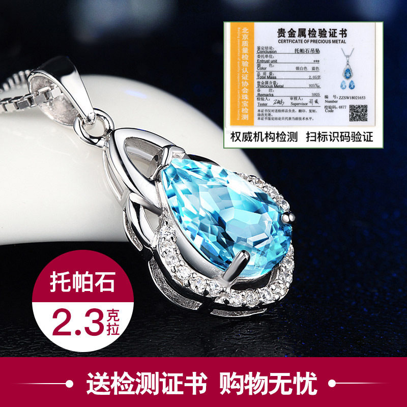 Topa stone pure silver necklace woman pendant luxury jewelry niche design birthday gift to girlfriend A